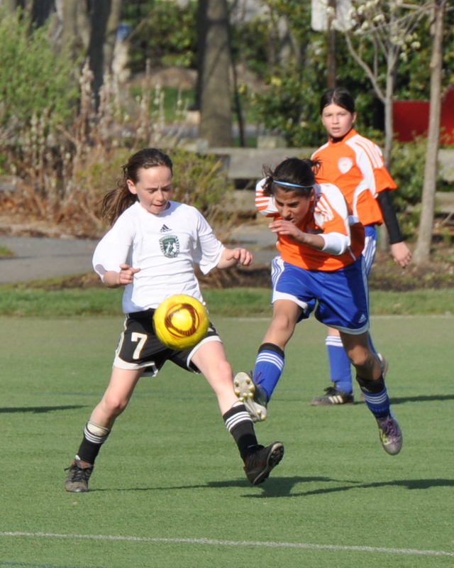 11/7/10 — A 2-1 win against Elizabeth Desportivo marked the Hawthorns’ eighth successive league victory and ensured that they will end the Fall season in first place. There are still two games remaining before the league campaign closes out, but with a total of 16 points so far, the Parsippany team is now in a position where they cannot be caught. The Hawthorns’ achievement is particularly remarkable given that they had originally been slated to play in a lower flight. The win that sealed the title was very much a game of two halves. Parsippany started the contest with a slightly different attacking strategy, which paid dividends almost immediately. They put themselves ahead within the opening 5 minutes with a well-worked strike straight from the training ground, and added a second just moments later. The second half was fast and furious, and both goalies were called upon to put their bodies on the line. A last-minute goal for Elizabeth — only the second goal that the Hawthorns have conceded in their eight league encounters — did not look likely to affect the outcome or upset the Parsippany girls’ celebrations.